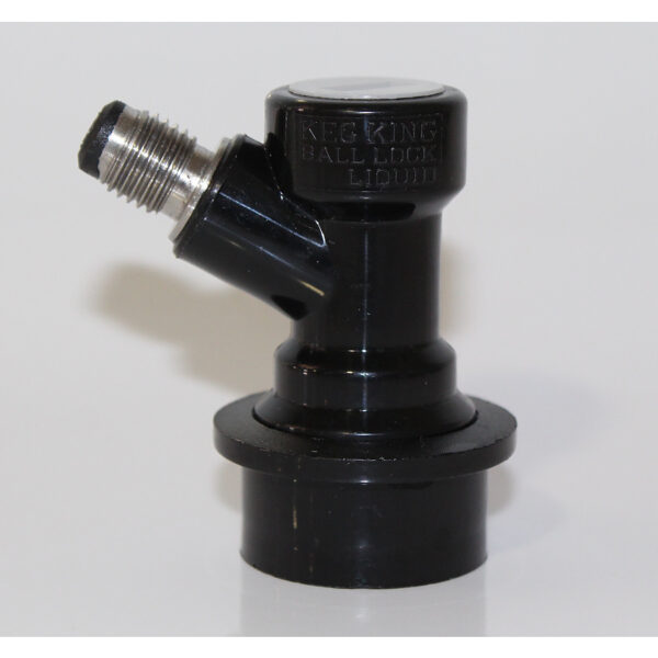 Liquid Ball lock Disconnect MFL Threaded – Suitable for Cornelius ball lock kegs. This liquid Disconnect has a 1/4″ MFL (Male Flared) threaded connection. Screw onto the disconnect a FFL push infitting (Item code 22052). This will allow you to easily connect and disconnect an 8mm outer diameter beer line to the fitting. No hose clamps required.