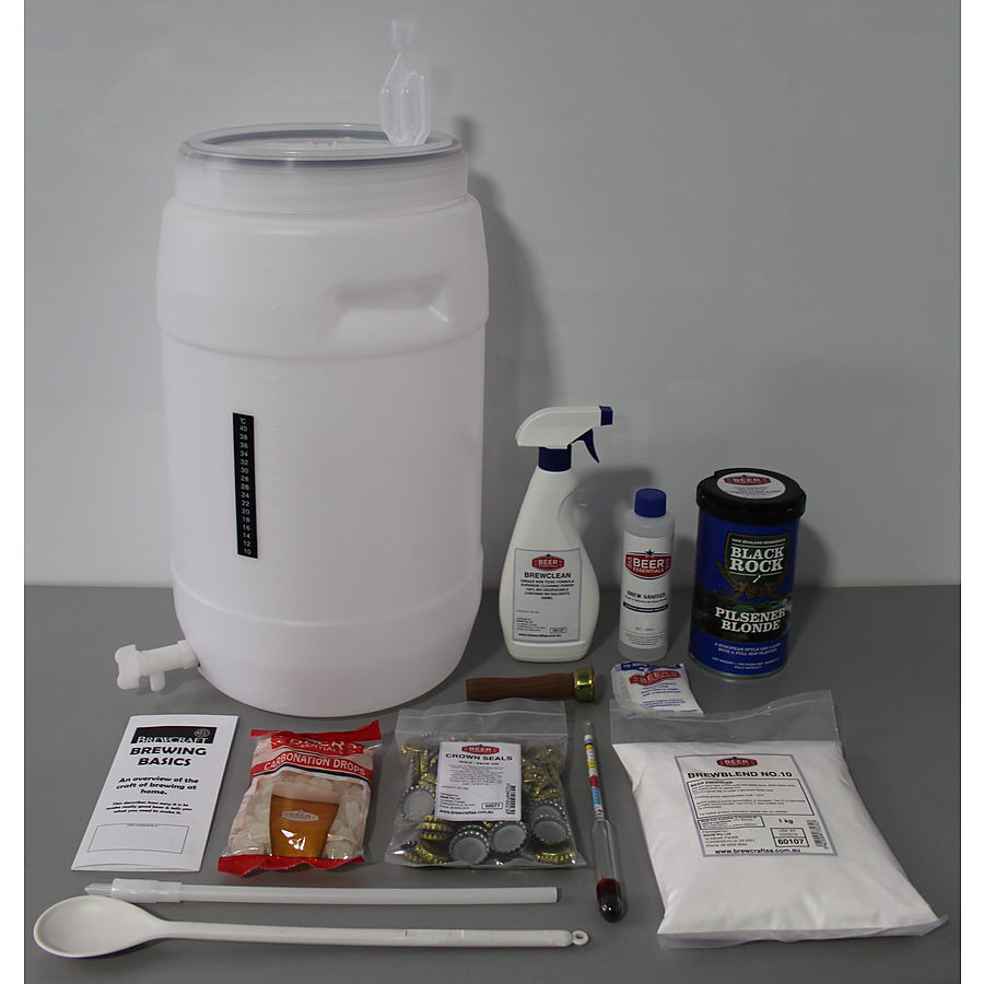 This kit contains: 30 Litre Fermenter, Airlock, Tap, Sterilizer, Thermometer, Mixing Spoon, Bottlling Valve, Brewclean, Hydrometer, Carbonation Drops, Brewshield Sterilizer, Crown Seals ,Test Jar, Instructions, Bottle Brush, Hand Capper, Beer Concentrate & Brew Booster.