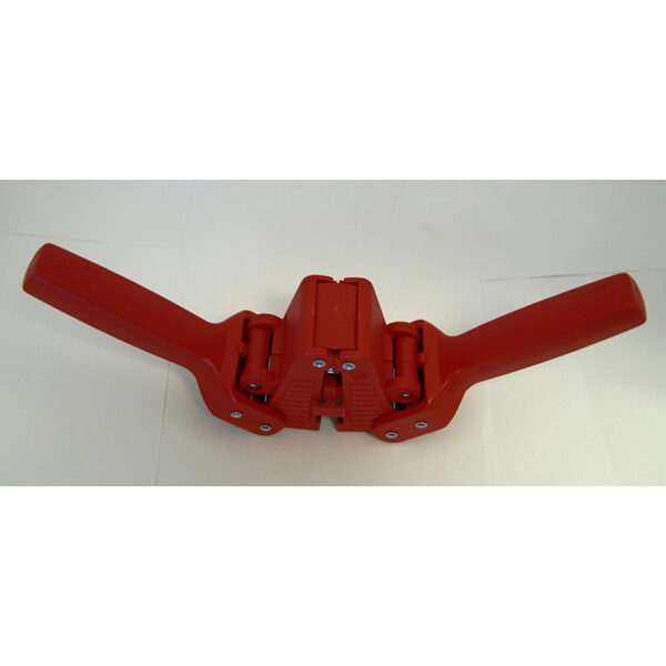 A solid twin lever hand held capper for use with crown seals on reusable glass bottles.