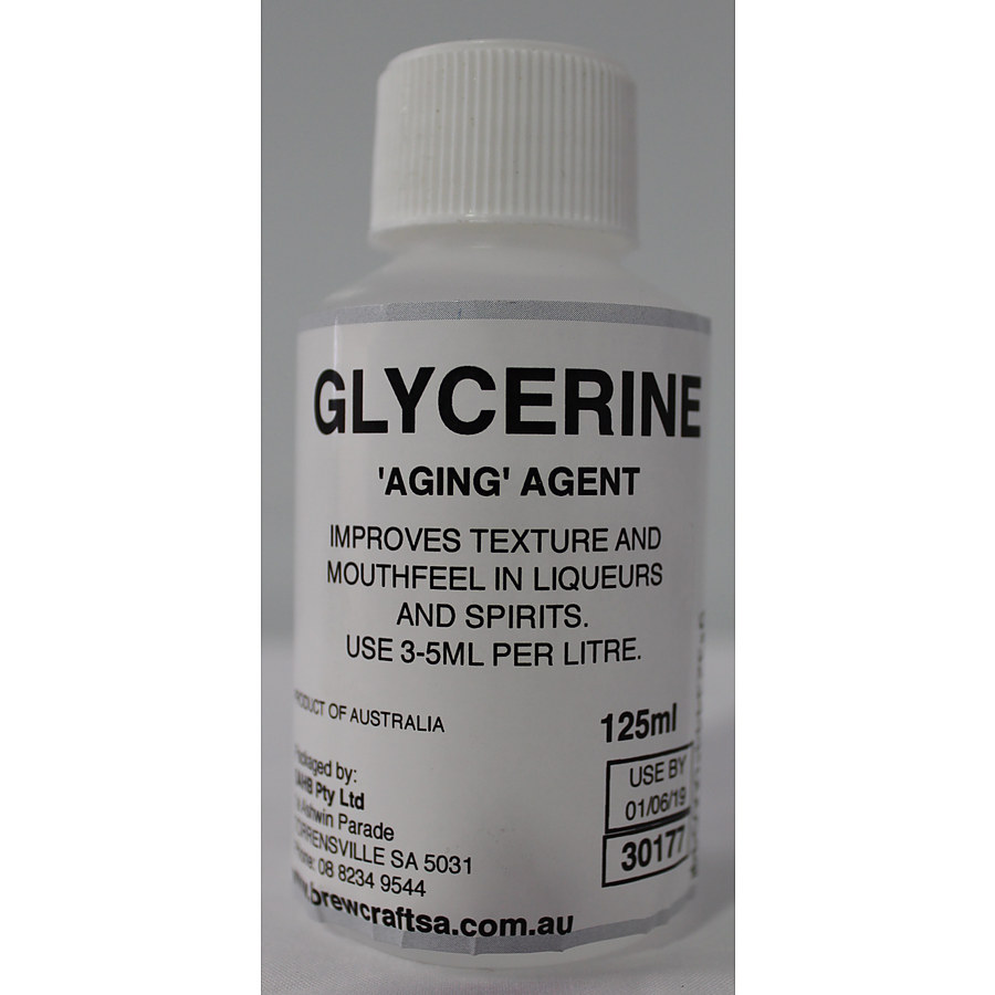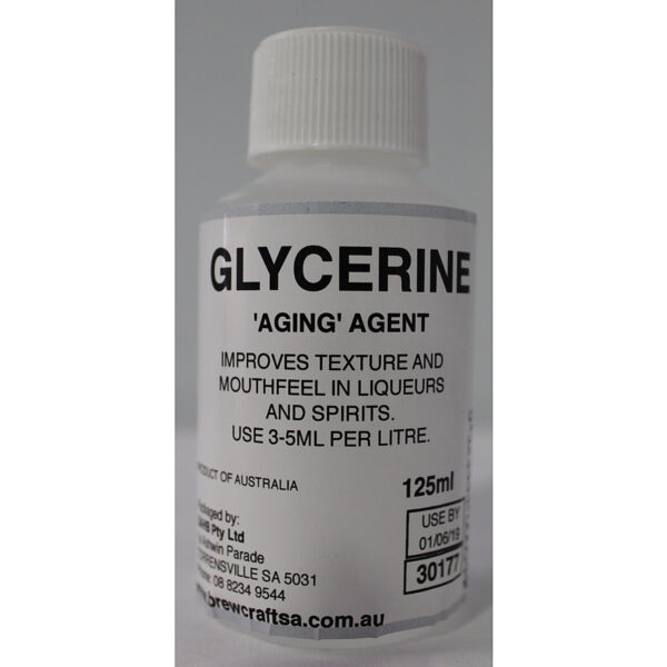 By adding glycerine to your spirits and liqueurs it gives the effect that they have been “aged” by improving their texture and mouthfeel. Dosage 3 – 5ml per litre.