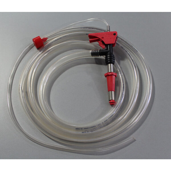 A quick and easy way to fill your bottles. Depress the trigger on the gun and the bottle begins to fill. Once the bottle is full the bottle filler automatically shuts off. The syphon hose is food grade and contains a stainless steel wire to keep the hose straight and has a sediment reducer at the end.