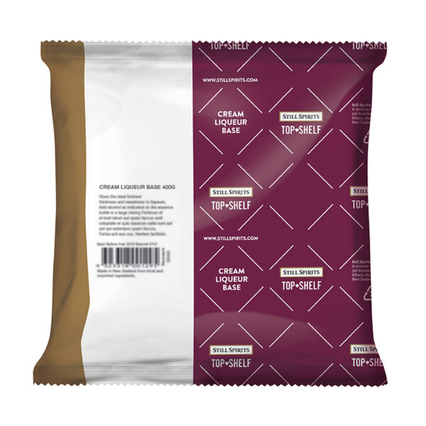 Top Shelf Cream Liqueur Base gives the ideal finished thickness and sweetness to Cream Liqueurs. Add 250mls warm water to large mixing jug. Add contents very slowly while stirring throughly with a whisk. Add alcohol as indicated on essence bottle & top up to 1.125L (40oz) with water.